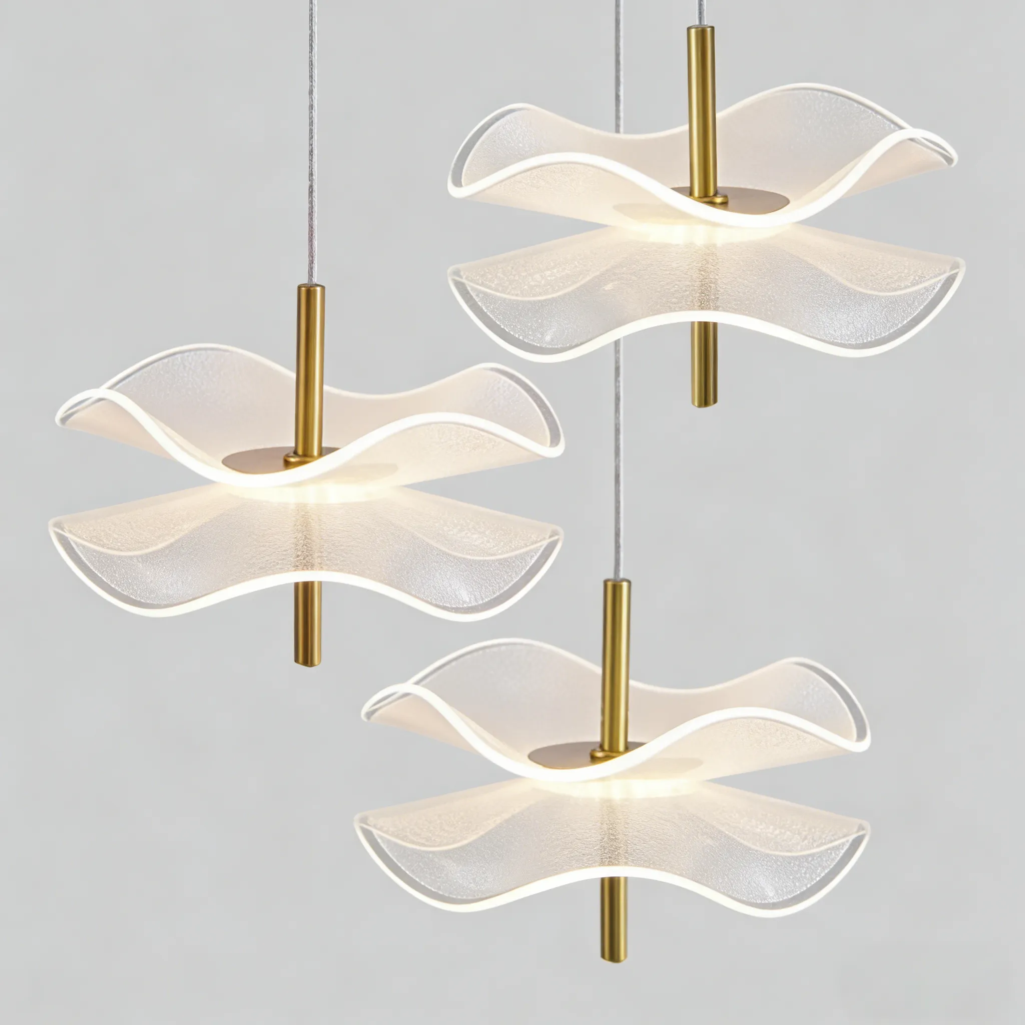 Featuring layered, petal-inspired translucent shades with soft, flowing lines, this design creates gentle light diffusion and an elegant artistic atmosphere with modern appeal.