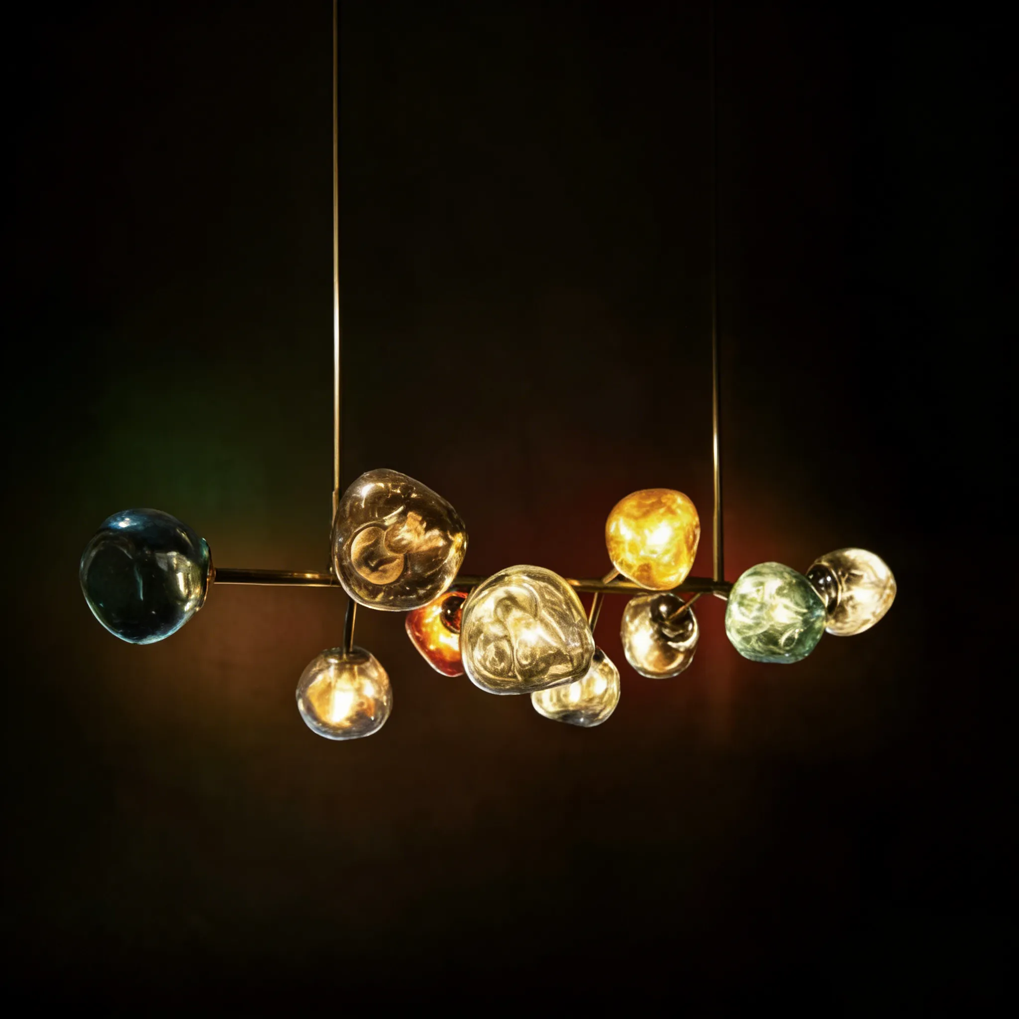 Composed of multiple colored glass spheres, these artistic glass pendant lights let each globe emit its own distinctive glow, creating a vibrant visual statement.