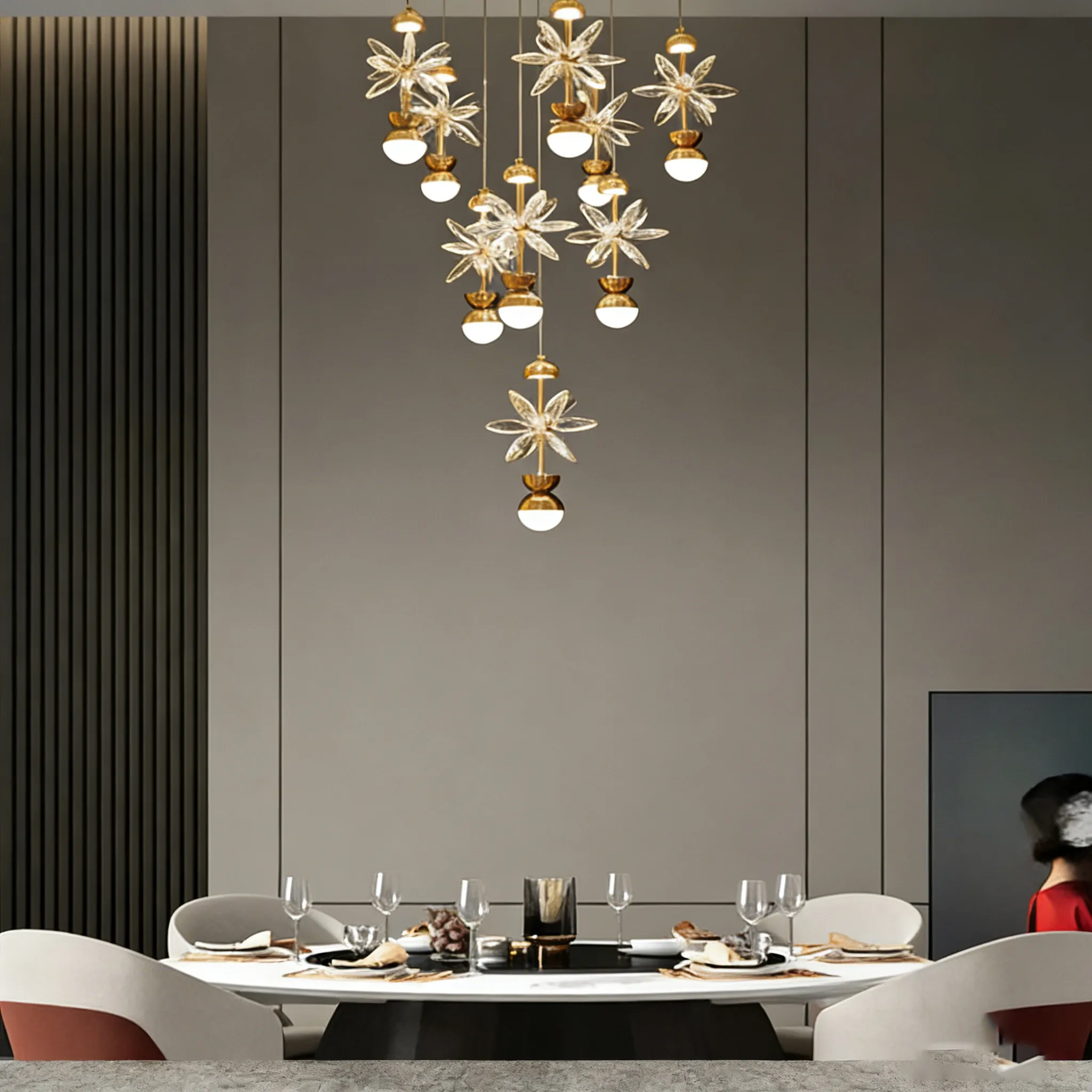 With multiple petal starburst forms suspended in a staggered arrangement, these ceiling lamps for dining room create a light-luxury focal point that resembles a blooming bouquet.