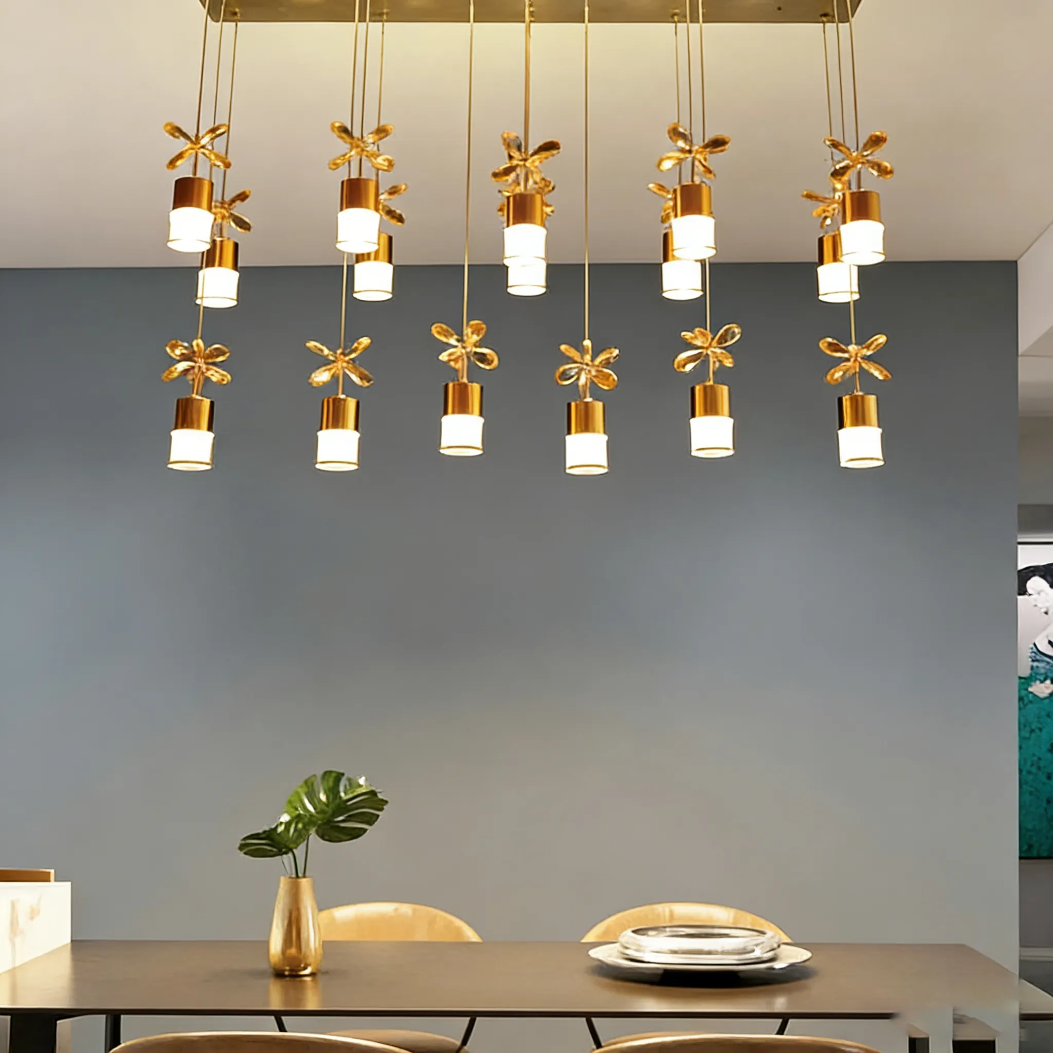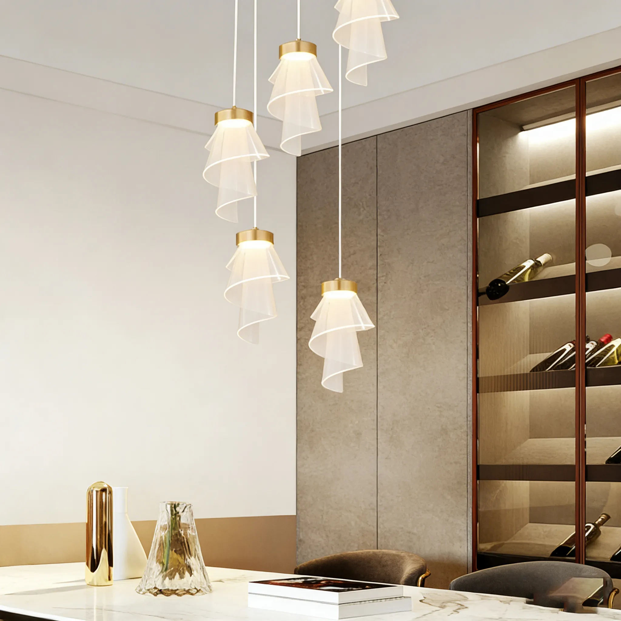 Featuring elegant bow-inspired forms arranged in a staggered layout, these pendant lights for dining room create a warm, refined atmosphere with a touch of light luxury.