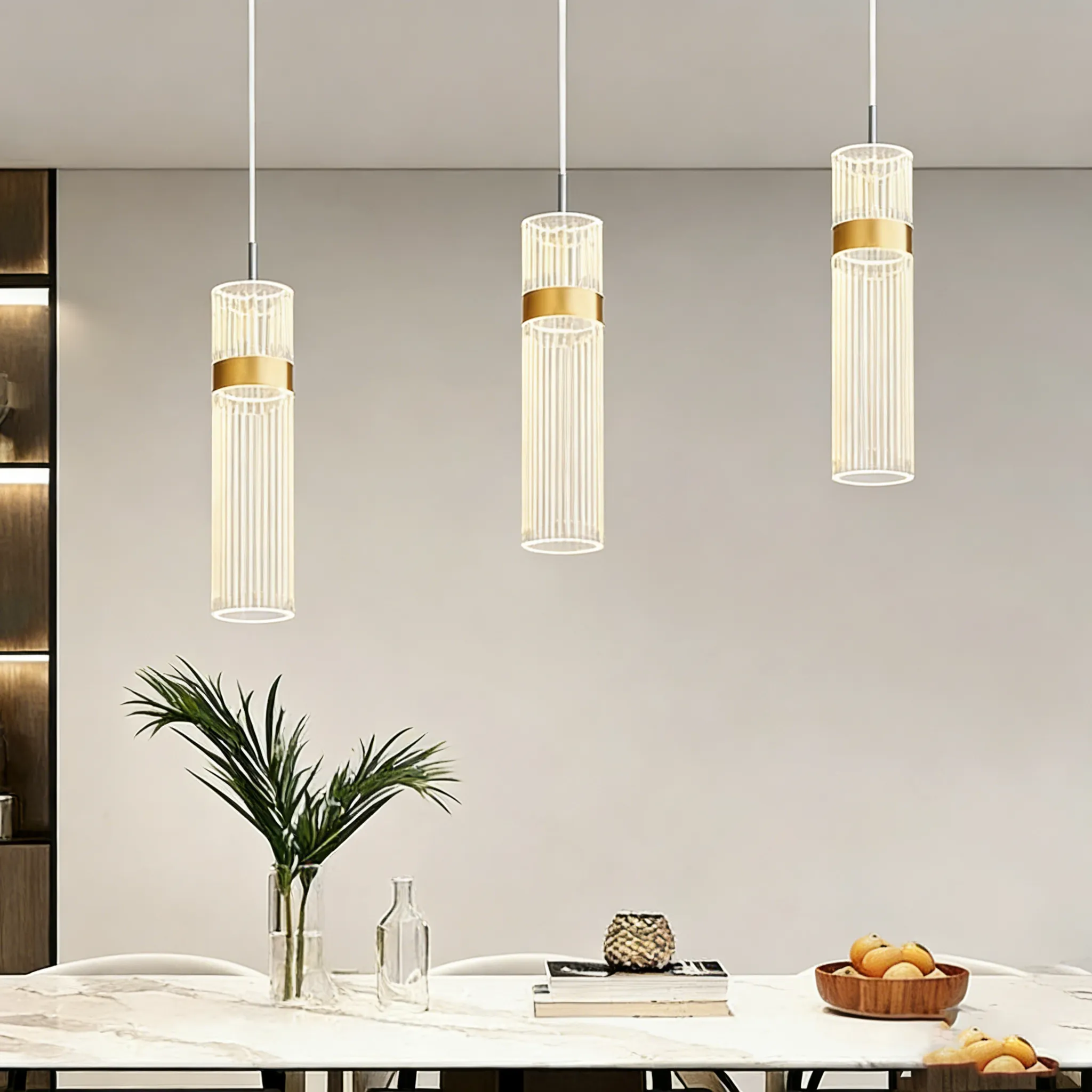 Gold-Ring Ribbed Cylinder Dining Pendant